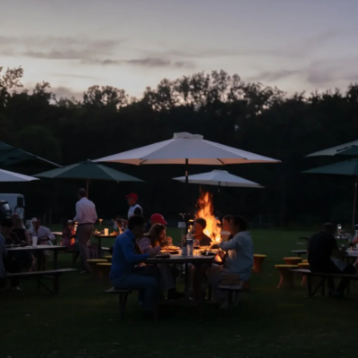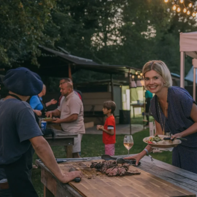 Around the fire, the conversation continues. Grilled meats, live music, and the connections that last well beyond the evening.